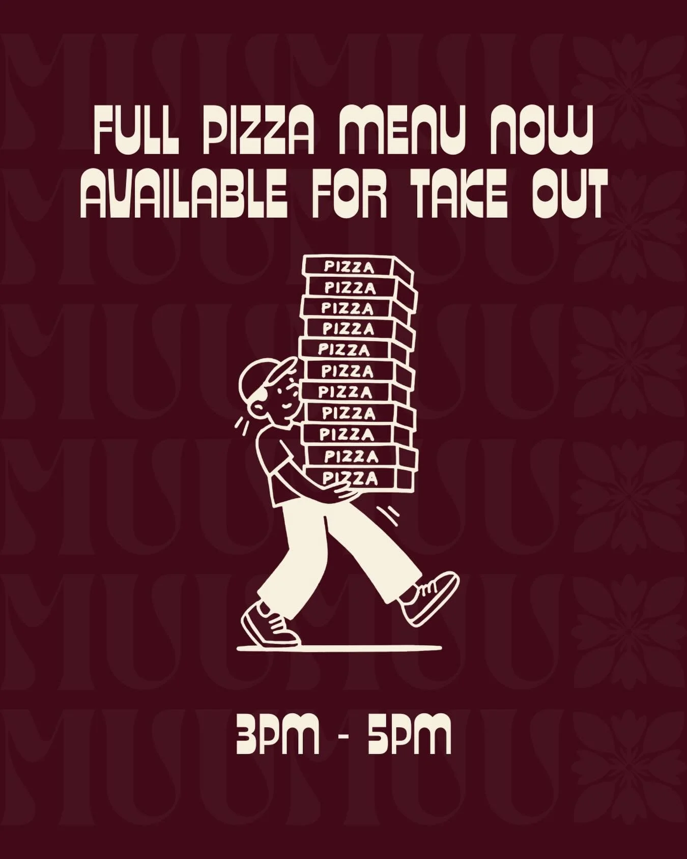 Muumuu’s menu celebrates the beauty of simplicity, blending classic Italian traditions with fresh, local inspiration. Each dish is crafted with care and meant to be shared—think hand-tossed pizzas, housemade pastas, seasonal salads, and small plates made for lingering over good company. Guests can enjoy a selection of wines, cocktails, and desserts that perfectly complement the meal, all served in a relaxed and welcoming atmosphere.
